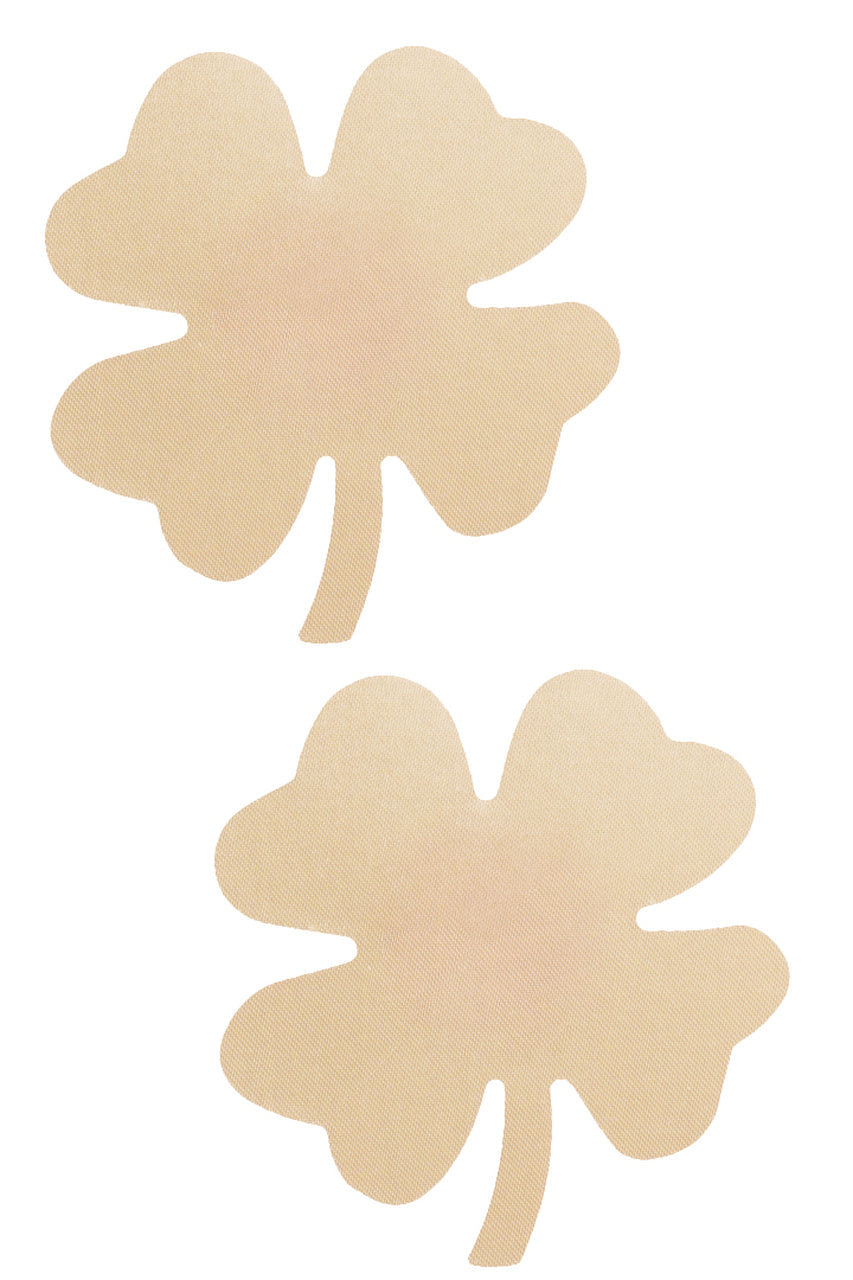 Women's Beige Mini Shamrock Nipple Pasties. Feature self adhesive tape, just peel and stick on clean, dry, oil-free skin.