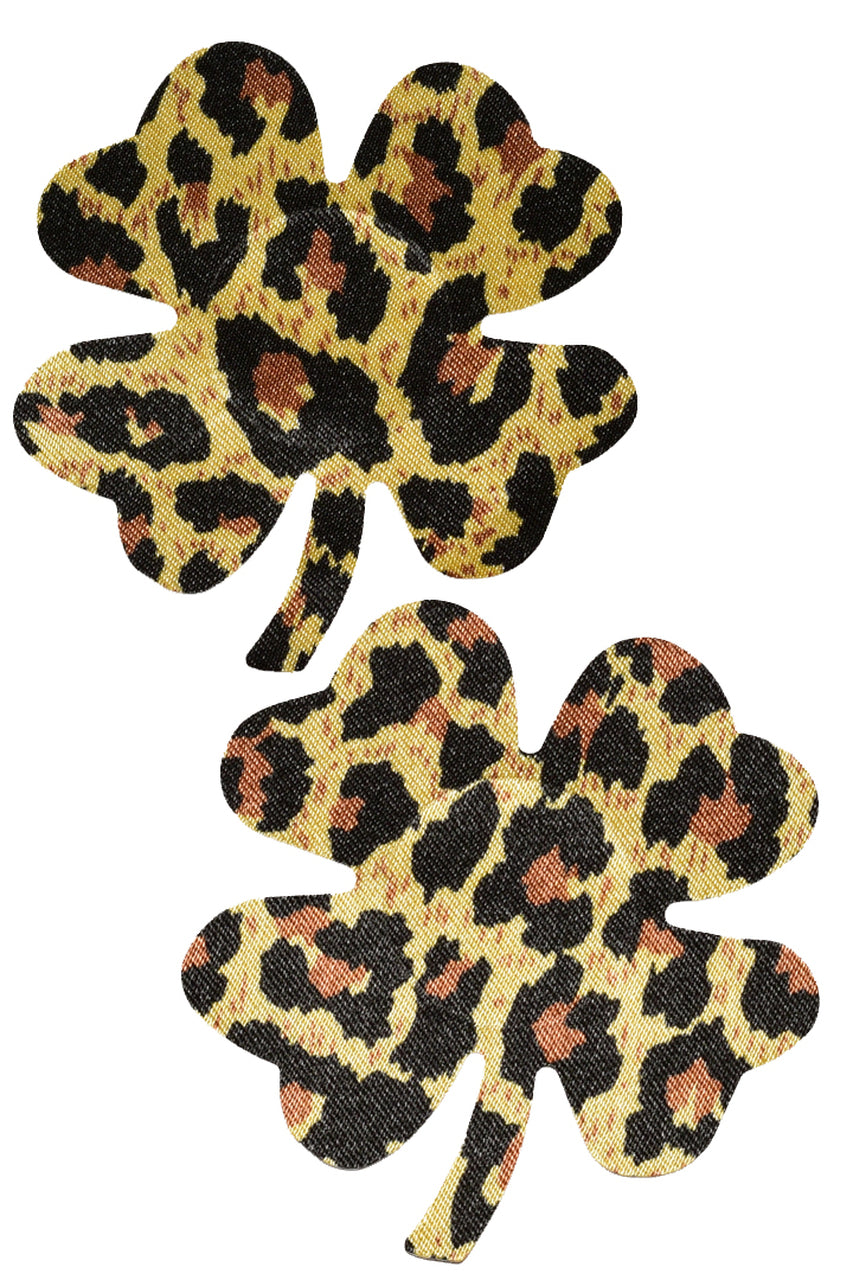 These mini leopard print shamrock nipple pasties. Features self adhesive tape, just peel and stick on clean, dry, oil-free skin!